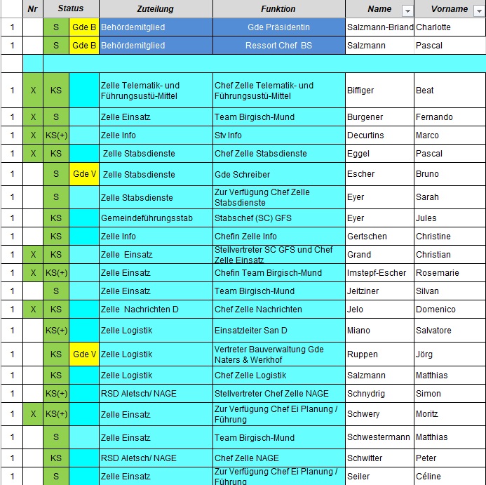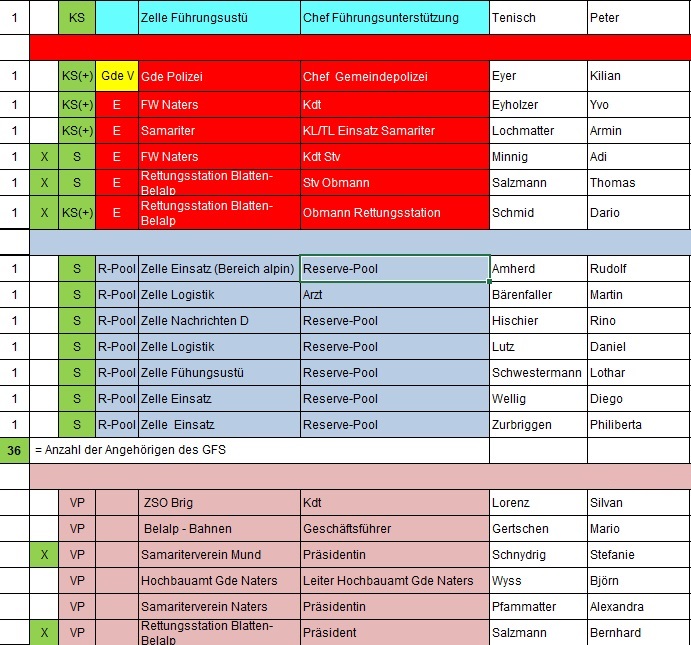 VP=Verbindungsperson, Team B-M =Team Birgisch-Mund, ZSO=Zivilschutzorganisation